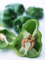 オスモチン源としては、熟す前の青いリンゴなどが使われるらしいが、緑色のピーマンなどは、まさに熟す前の果実だね。